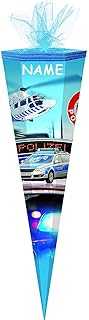 alles-meine.de GmbH Schultüte - Polizei Auto / Hubschrauber - 85 cm - 6-eckig - incl. Namen - Tüllabschluß - Zuckertüte - mit / ohne Kunststoff Spitze - für Jungen / Polizist..