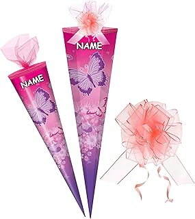 alles-meine.de GmbH Schultüte - Schmetterlinge - 85 cm 6-eckig - incl. Namen und Schleife - mit / ohne Kunststoff Spitze - Tüllabschluß - Zuckertüte - für Mädchen Schmetterling r..