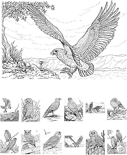 Erwachsene Färben Buch (24 Karten 10,2 x 16,5 cm) Birds of Prey Eagle Eule Falcon Vintage Design für Erwachsene Färben