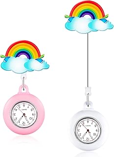 2 Stück Nette Krankenschwester Uhr Taschenuhr Hängende Uhr Tragbare Einziehbare Anklammern Uhr Taschenuhr Geschenk für Krankenschwester Ärzte Studenten (Weiß und Rosa, Regenbogen Stil)