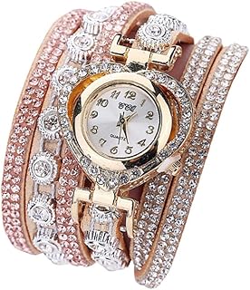 P Prettyia Damen Schöne Mode Strass Armband Uhr Frauen Uhr Armbanduhr Uhren Geflochten Armreif Mode Schmuck - Beige weiß