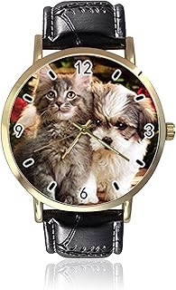 Süße schöne Shih Tzu Hund und Katze Damen Herren Uhren Mode Unisex Leder Casual Quarz Armbanduhr Uhren