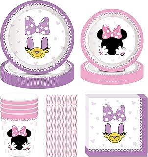DreamJing Rosa Mädchen Papier Partygeschirr Set, Tischdeko, Pappgeschirr Partygeschirr mit Servietten Geburtstag Geschirr Kit, 69 Teile Happy Birthday Set (8 Gäste)
