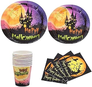 CAKEY 50 Stück Geburtstag Partygeschirr Set Partygeschirr Geburtstag Teller Partybedarf Pappteller Becher Servietten-Set für Halloween-Party Jahrestag